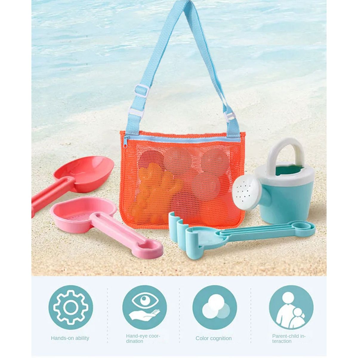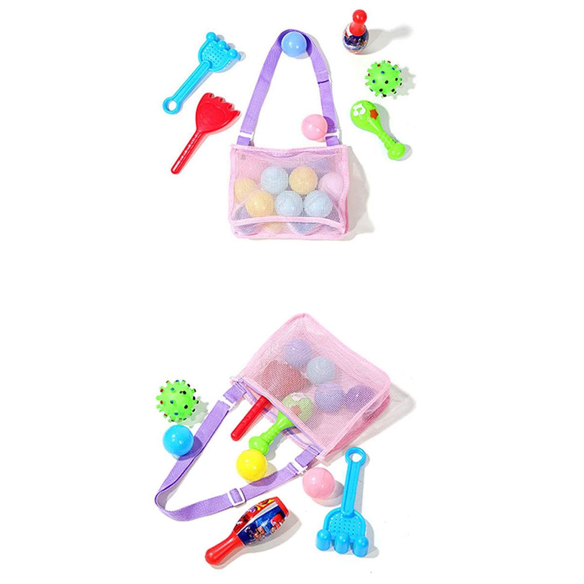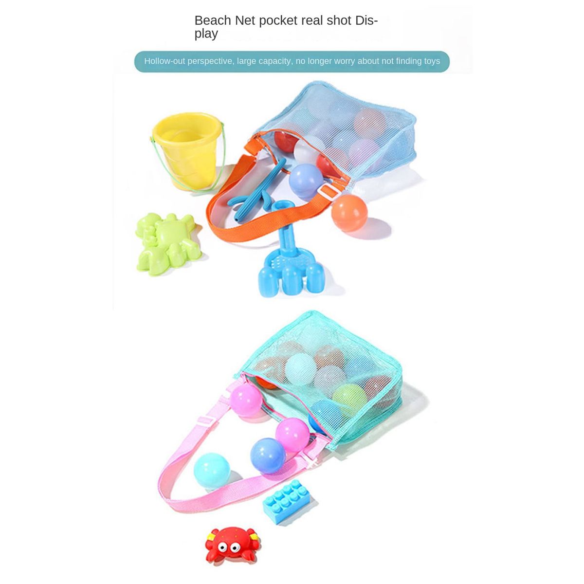 Detailed Information About The Product:Mesh Beach Bags for Kids: matched with different color straps; This mesh beach bag is designed for kids to collect seashells on the beach, besides, it can also be applied as a storage bag to store beach toys and hang them on the wall at home; The bottom is expandable so that you can collect more seashells and store toys, add fun to kids' beach time