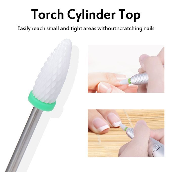 6 different shapes and sizes: rough torch drills, medium and small flame drills, fine barrel and umbrella drills and a hard brush to meet your needs. Made of high-quality ceramic materials, these nail tools are wear-resistant, sharp and durable, and exquisite and delicate.