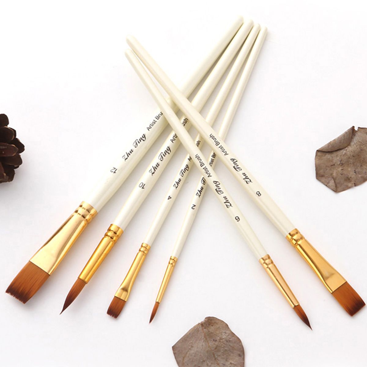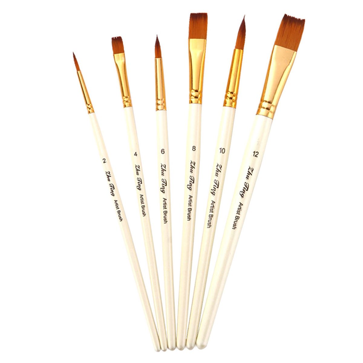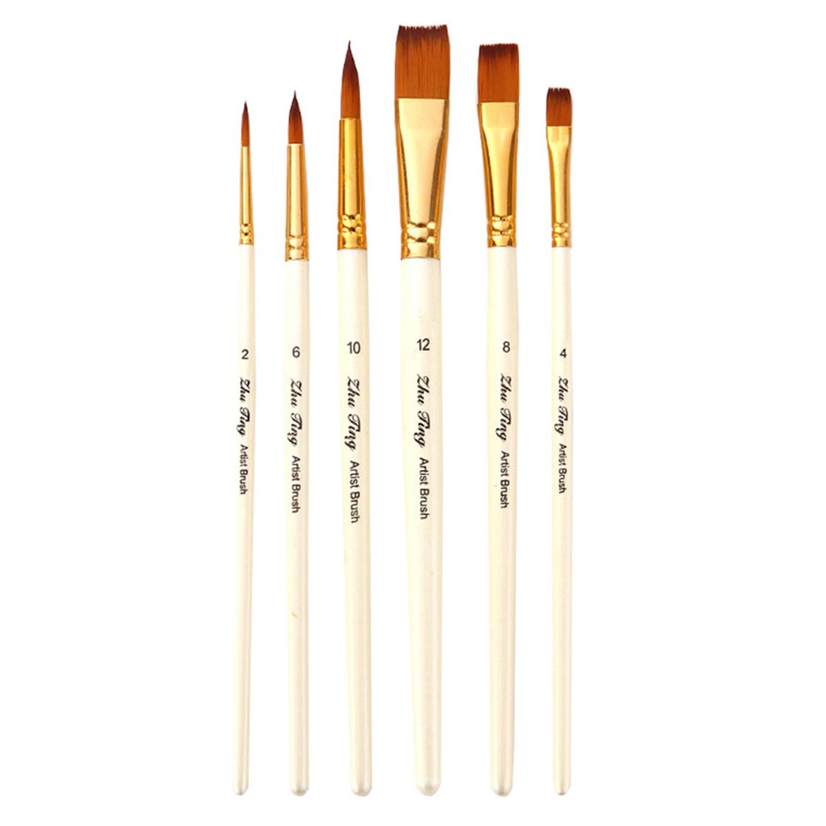 Features:6pcs paint brushes set, which can meet different painting needs, including Round Tips(2#,6#,10#); Flat Tips(4#,8#,12#).