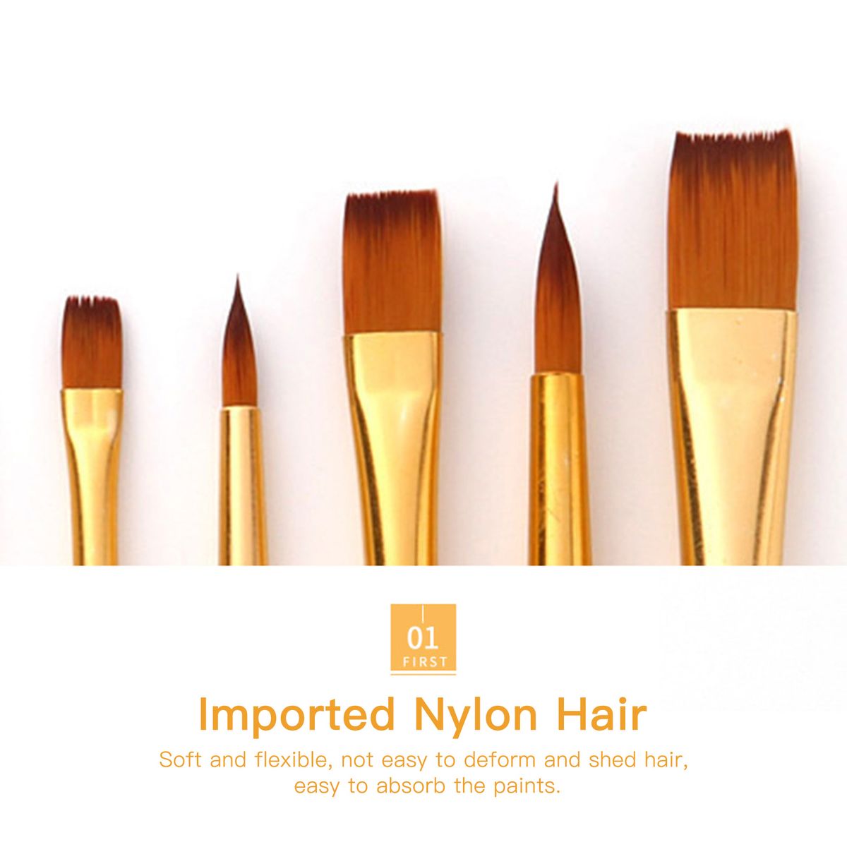 The brushes adopts nylon hair, soft and flexible, not easy to deform and shed hair, easy to absorb the paints.