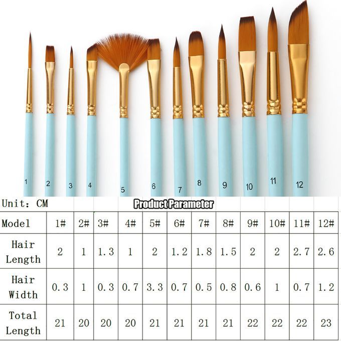Paint Brush Model: Round Tips(2#,6#,10#); Flat Tips(4#,8#,12#)