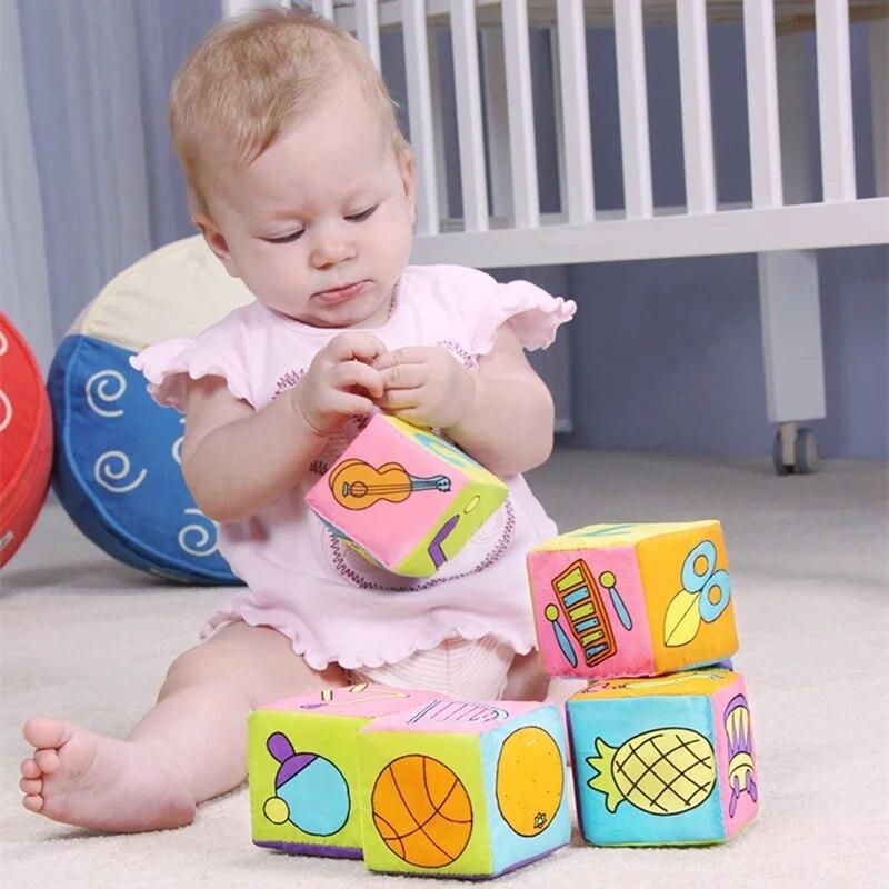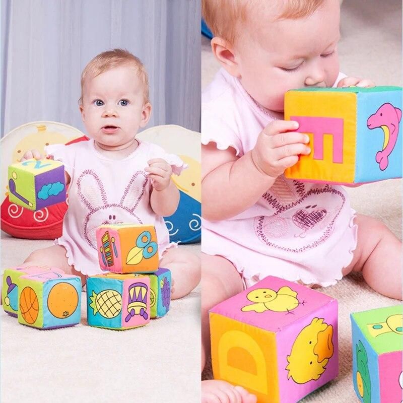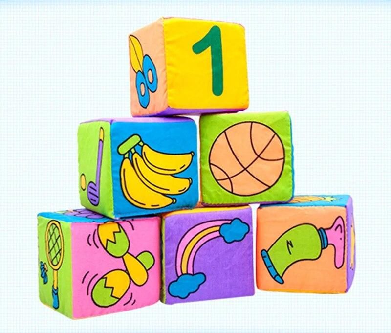 Buy 6pcs Plush Baby Mobile Cube Toys Baby Building Blocks Rattles Early Learning Infant Newborn Baby Educational Toys 0-12 Months in Nigeria