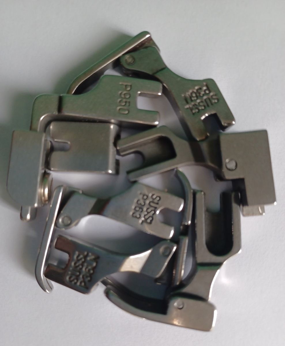 A set of industrial sewing machine presser foot set containing 5 number presser foot namely: P950, S518NS, P36N, P36LN, P363 and straight stitch foot.