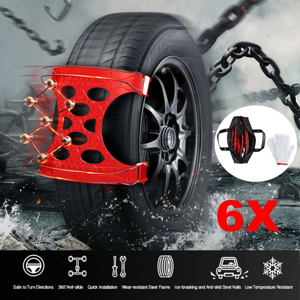 Universals Car Tire Steel Wire Snow Chains[Easy to install This snow chain is universals for most of the car, SUV, ORV... There`s no need to match the tire model. It can be installed manually with no need for a wheeljack and no need for moving the vehicles.[Principle Use the special rough surface with quenched steel nails and TPU nails of the snow chain to increase the friction with the road surface.[Function Generally, in snowy and muddy road conditions, it protects the tires, prevents the tires from slipping, and ensures the normal driving of the vehicles.[Safety Especially on the snowy roads in winter, it can effectively ensure the smooth running and safe driving of the vehicle.[Upgrade Internally added 2m steel wire winding, connecting 11 stud, can withstand greater pulling force.