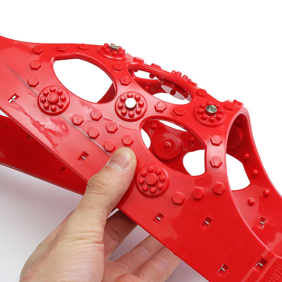 Specifications:Name: Universals Car Tire Steel Wire Snow ChainsMaterial: Beef Tendon TPU+ Steel rope through steel nail + NylonColor: RedUpgrade: Widened, Thickened, Steel WireWeight: About 400g/ pieceApplication Condiction: Snowy road, Muddy road , mountain roads.Application Vehicle Model: Cars, SUV, ORV...Most-Matched Tyre Spec: Width 165~275mm