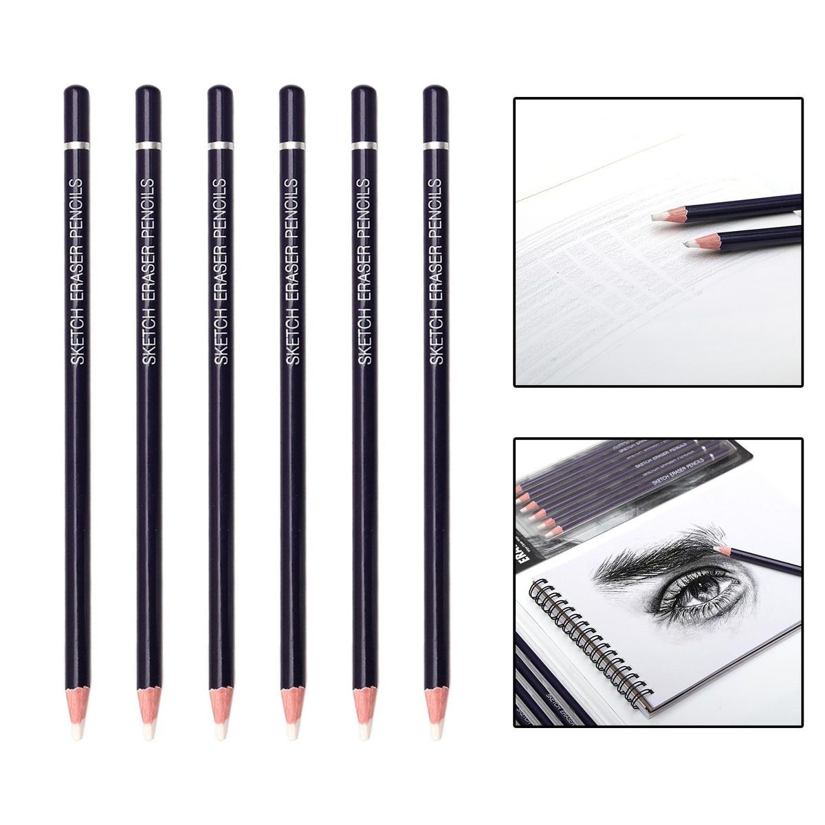 of 6 pieces penstyle erasers, along to conveniently sharpen the eraser pencils; Adequate quantity to meet using, sharing needs.