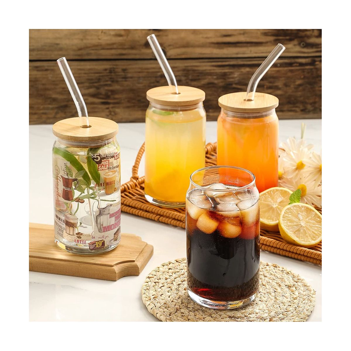 LIDS STRAWS AND STRAW-BRUSHES INCLUDED If you are a fan of home beverage making then this is an extra No extra buying of these items to effortlessly an -style drinking glass they can also be sublimated by DIY with reusable glass straws and -helpful matching bamboo lids such as sangria fruit punch and bubble tea And they make a combination to be an out-carry drinking glassware