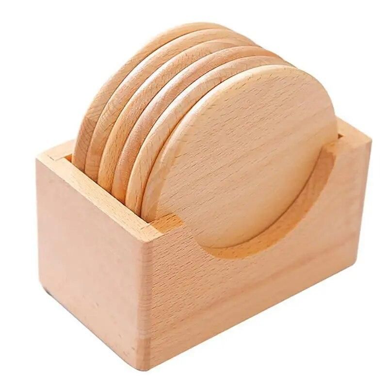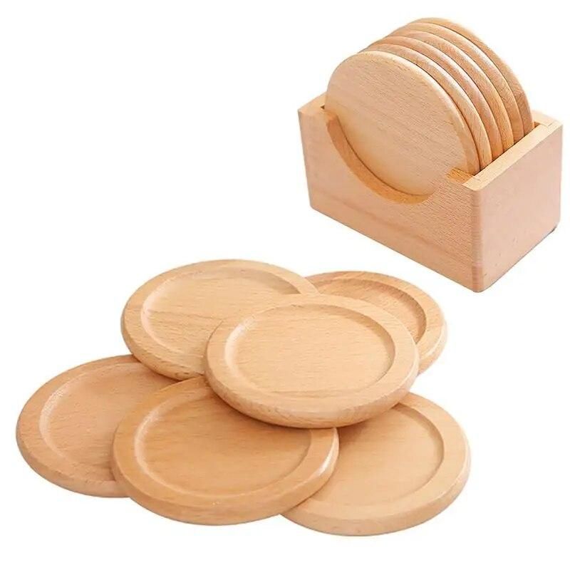 Buy 6pcs Simple Wood Drink Coaster Coffee Cup Mat Tea Pad Dining Fashion Soft Wooden Placemats with Holder Decoration Accessories in Nigeria
