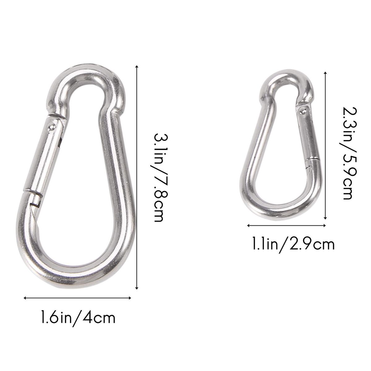 Detailed Information About The Product:Stainless carabiner clip is made of 304 stainless steel that protects against corrosion and surface is smooth. And they won't crack or bend due to the application.
