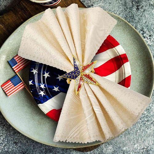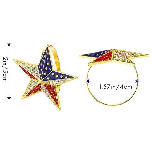 Each patriotic napkin ring frame is designed with a five-pointed star, inlaid with transparent, red and blue shiny rhinestones. The colors are from the American flag, making your home full of patriotism.