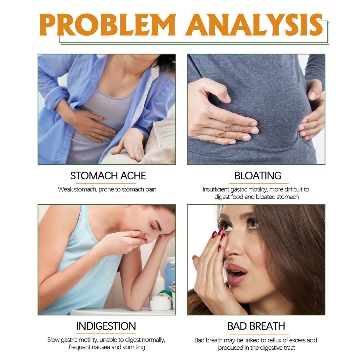 Improve abdominal distension, indigestion, stomach pain and other adverse symptoms.