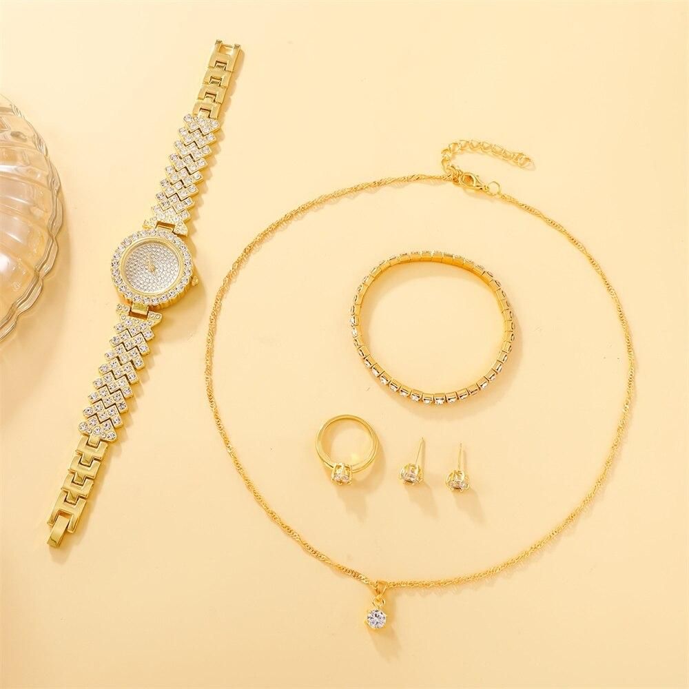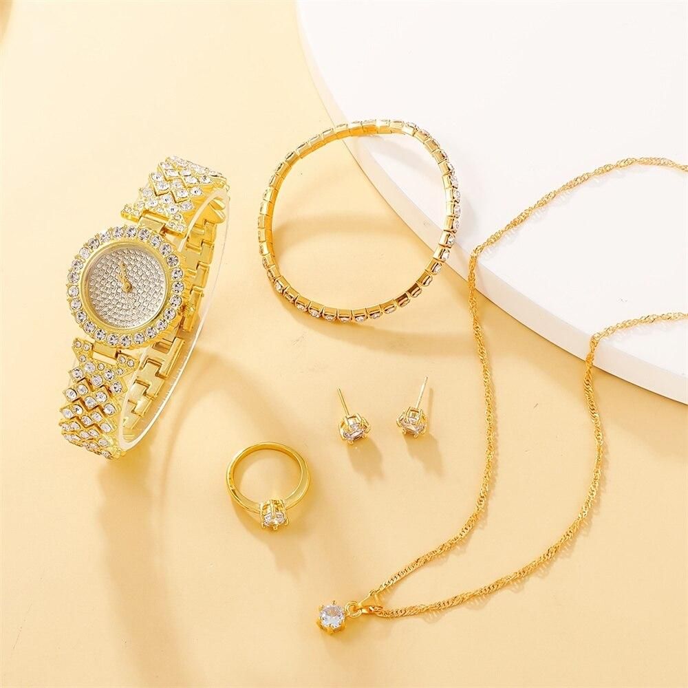 Buy 6pcs Watches Set Luxury Rhinestone Women Fashion Elegant Wristwatch Quartz Watch For Girl Ladies Clock Relogio Feminino in Nigeria