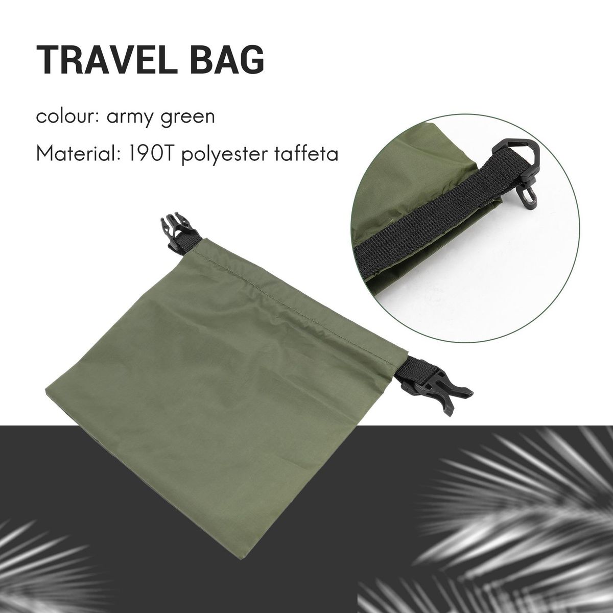 Detailed Information About The Product:[Waterproof and durable] The drying bag is made of 190T polyester taffeta, soft and flexible tear-proof fabric and PU coating for waterproof protection. The full-line glue pressing process and sturdy roll top closure system provide a safe and waterproof seal to protect your valuables from any rain, snow, dirt, dust or sand. Note: The bag is not suitable for complete soaking or floating. Try not to be covered by a lot of water for a long time.