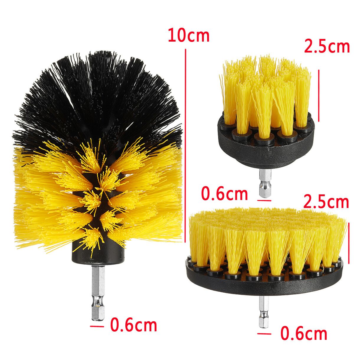 -This kit contains medium stiffness plastic brushes that will attach to your favorite cordless drill.