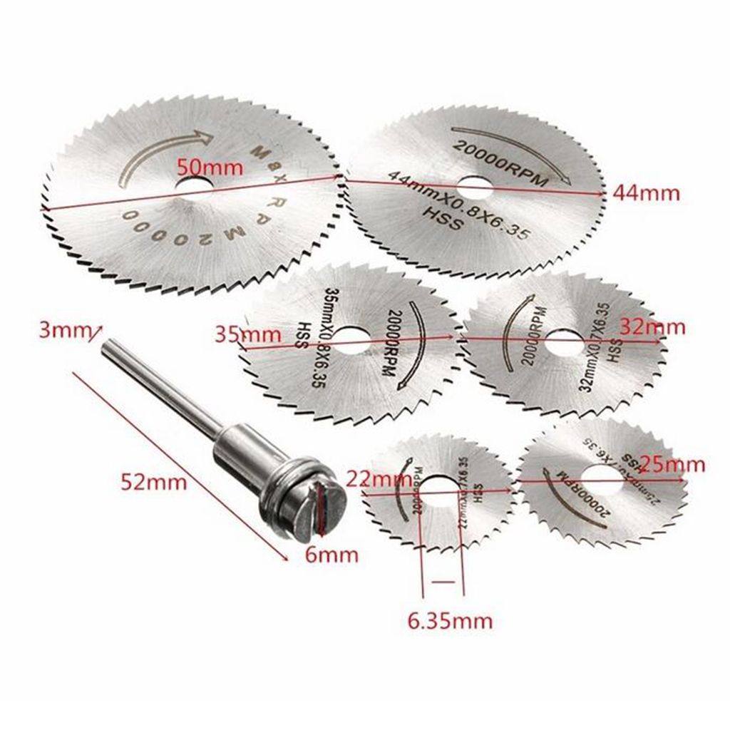 6 Pieces Circular Saw (22mm,25mm, 32mm, 35mm, 44mm, 50mm)1 Piece Extension Rod (3.175mm)