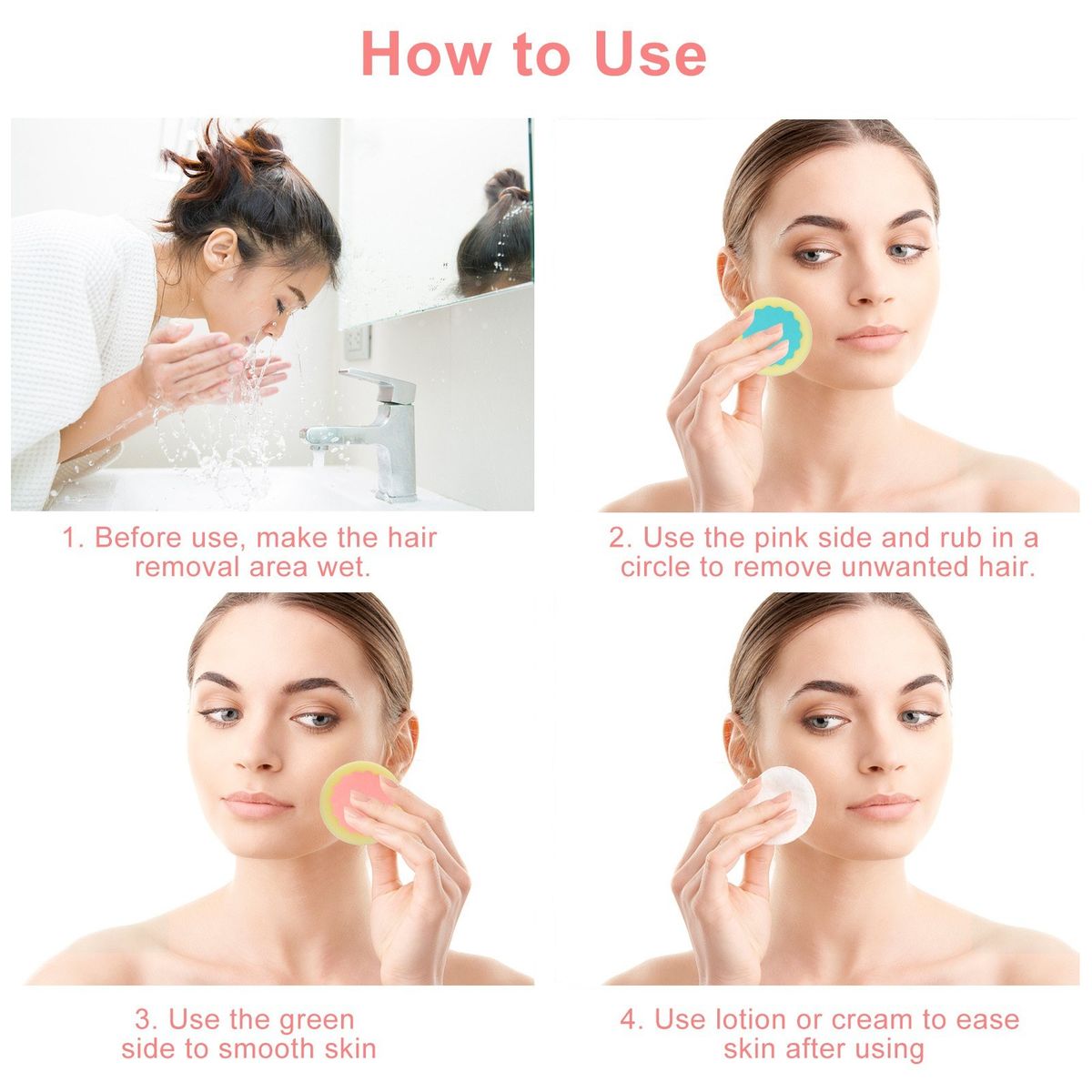 2. Use the pink side and rub in a circle to remove unwanted hair.