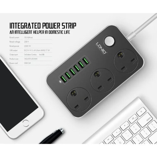 Buy 6USB Port With 3 Socket Auto Max 3.4a Ldnio in Nigeria