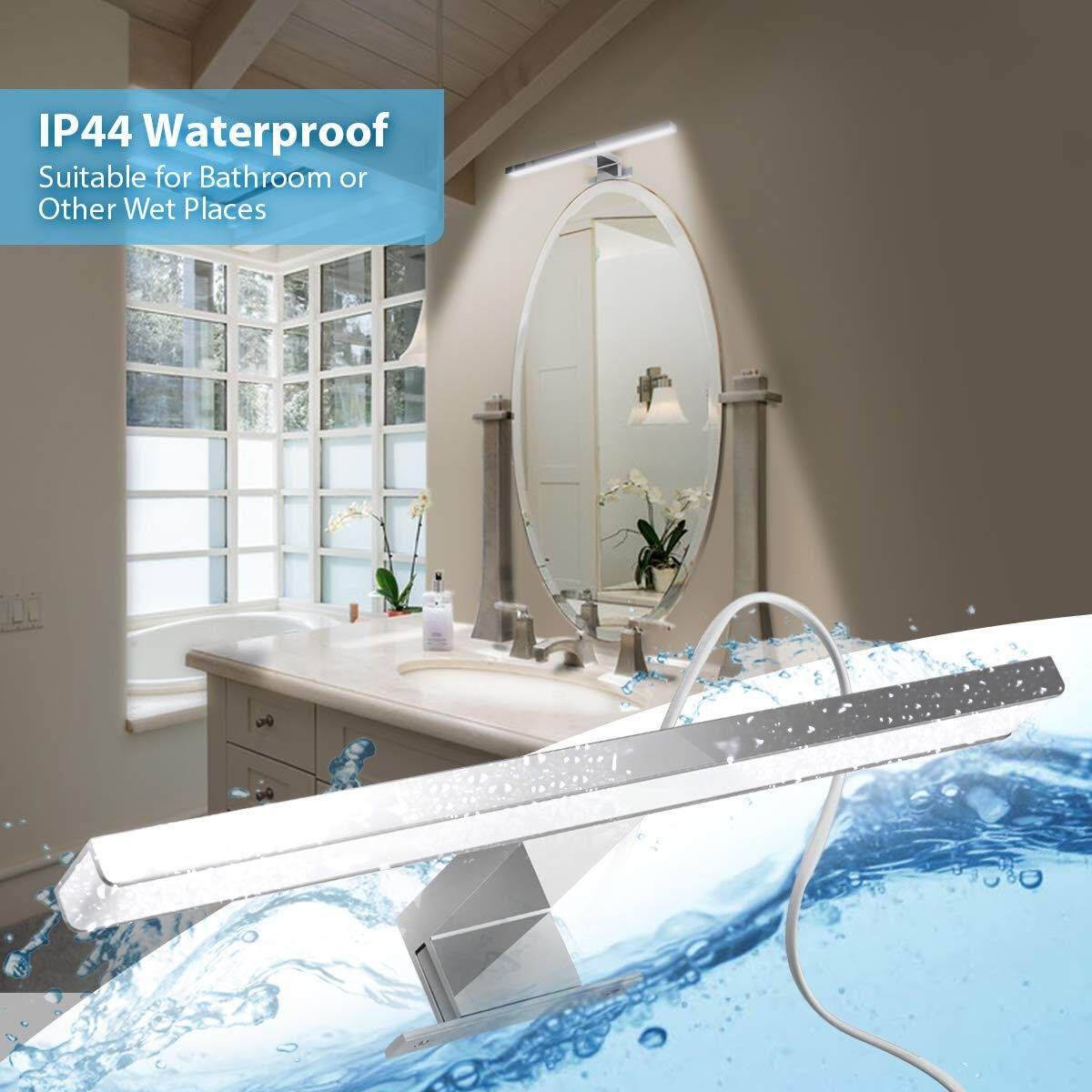 【Comfortable high brightness】: with 4,000 K and 600 lumens LED mirror lamp shines in white, bright light, has no yellow and blue tings. Ideal as a make-up light and suitable for bathrooms, waterproof, the protection class is IP44.