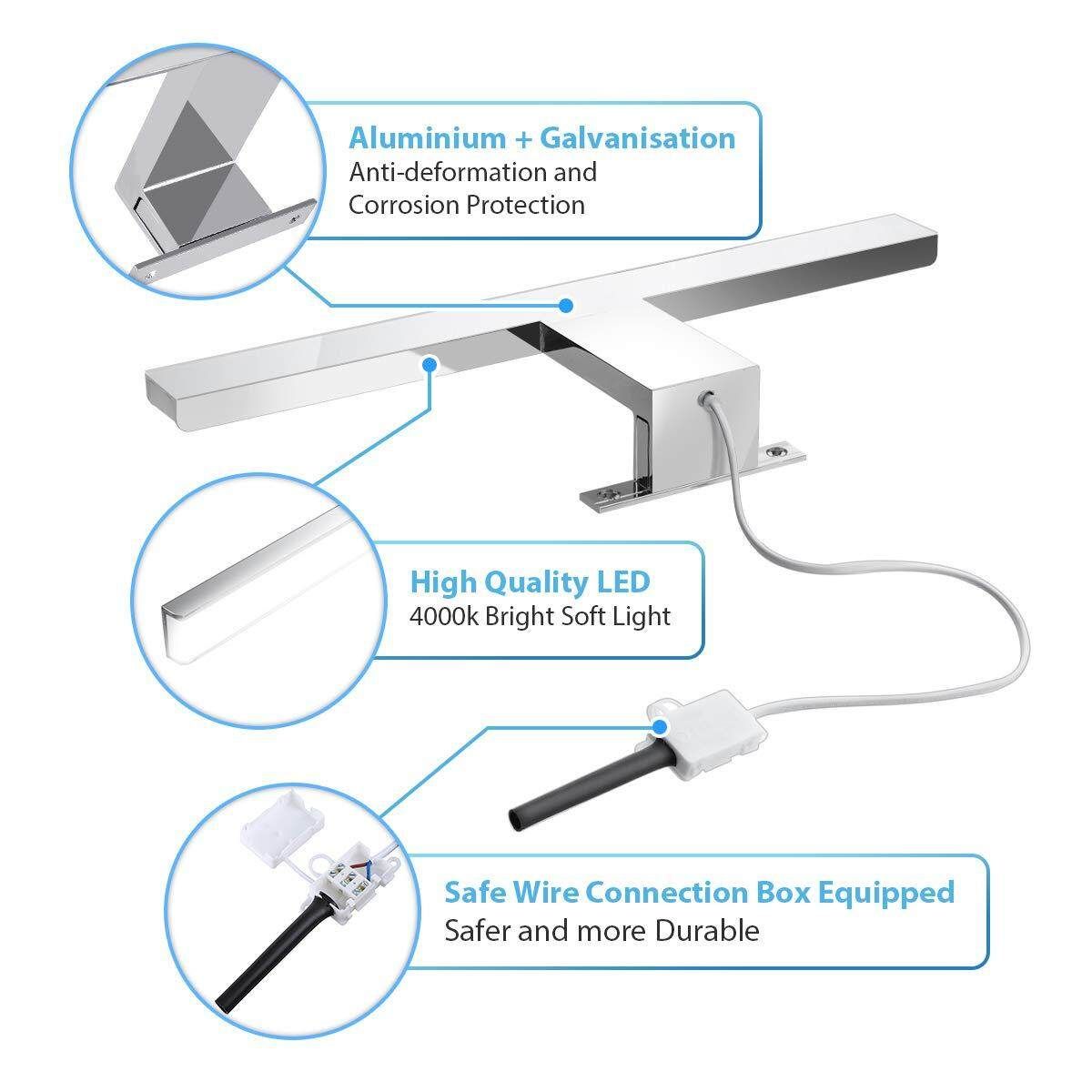 Simple design: mirror lamp bathroom light is made of aluminium corrosion resistant. Housing is glossy chrome, smooth and textured. LED mirror light bathroom lamp fits perfectly into any living room.