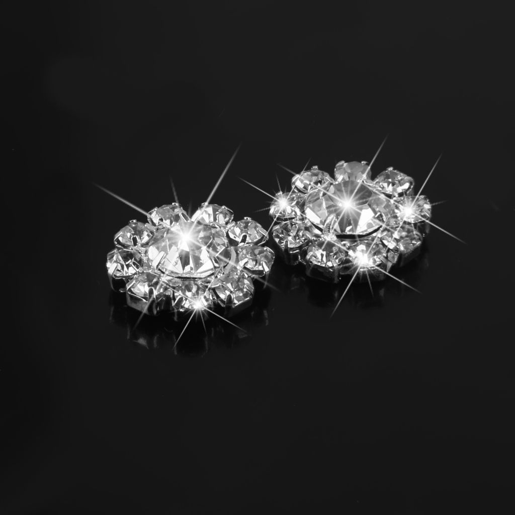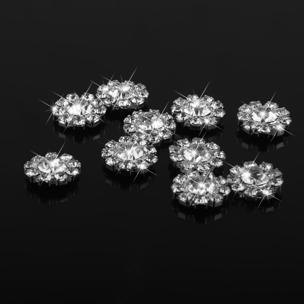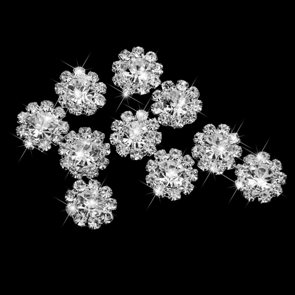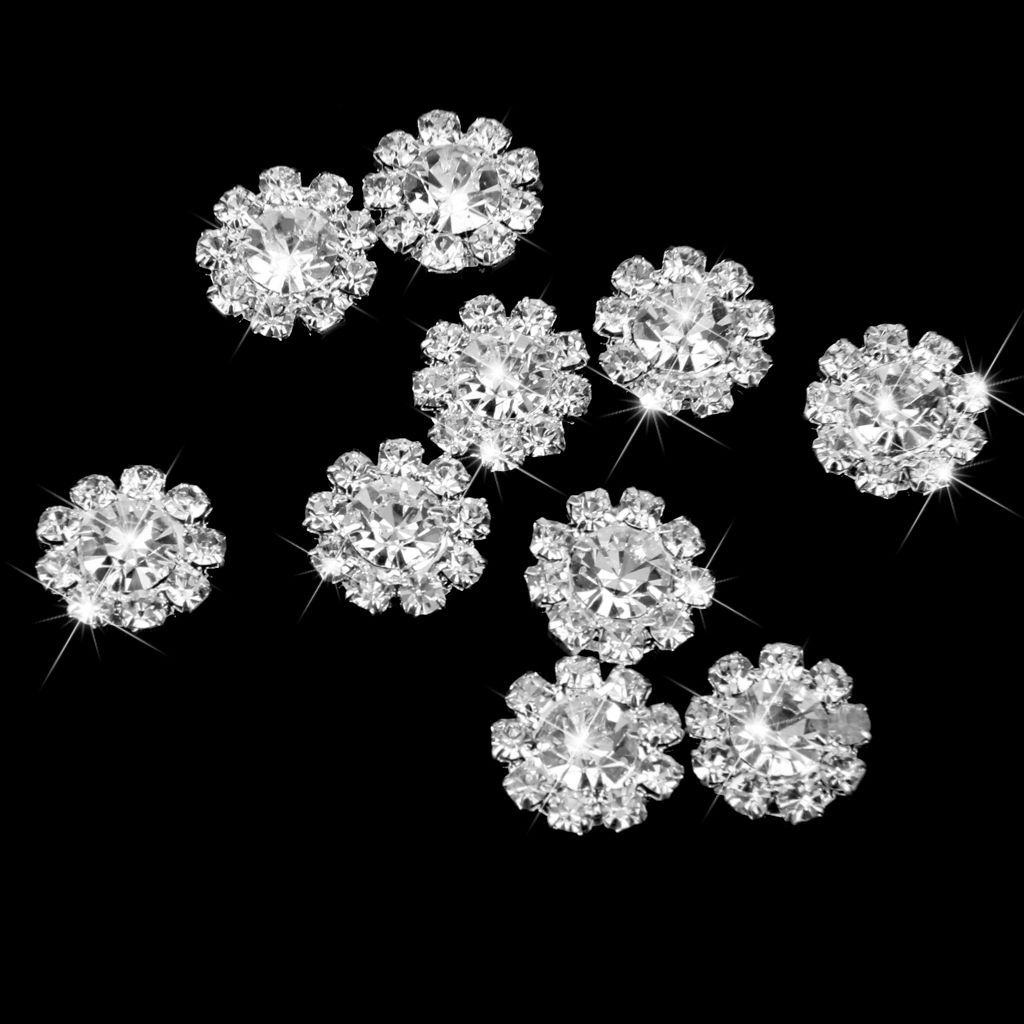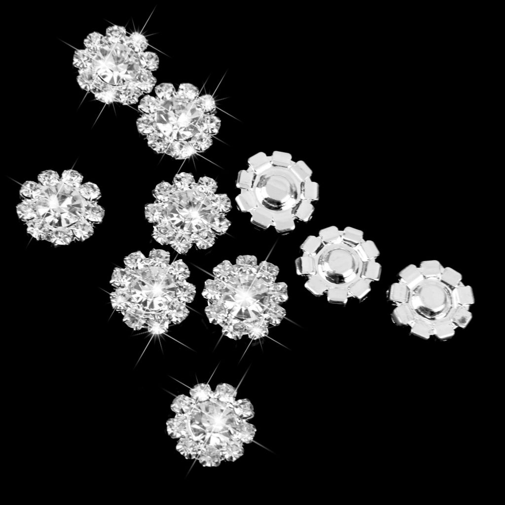 6xCrystal Diamante Pearl Flower Buttons FLATBACK Embellishment E