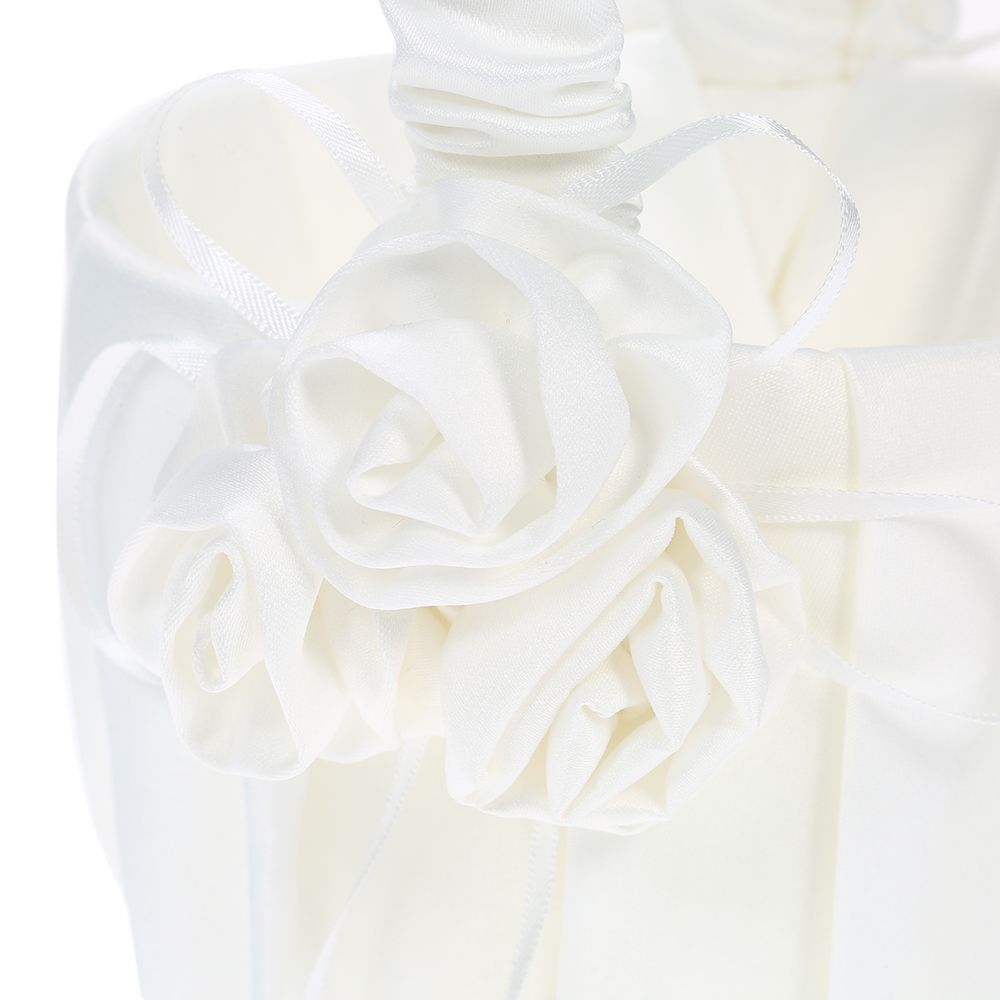 The basket is covered by soft satin and decorated with three satin flowers.