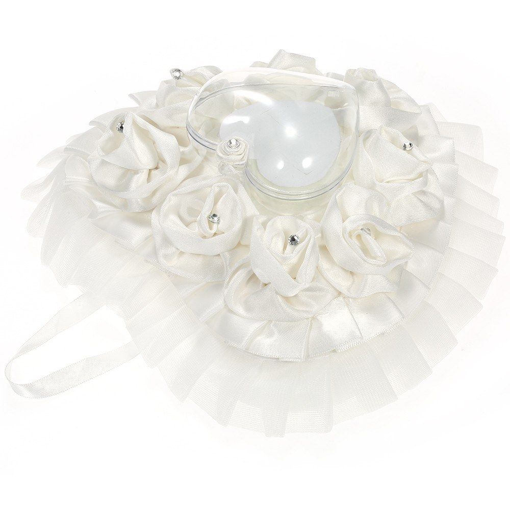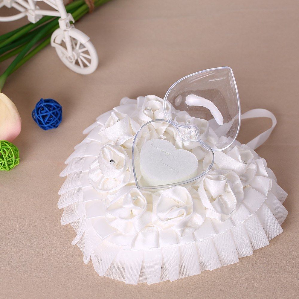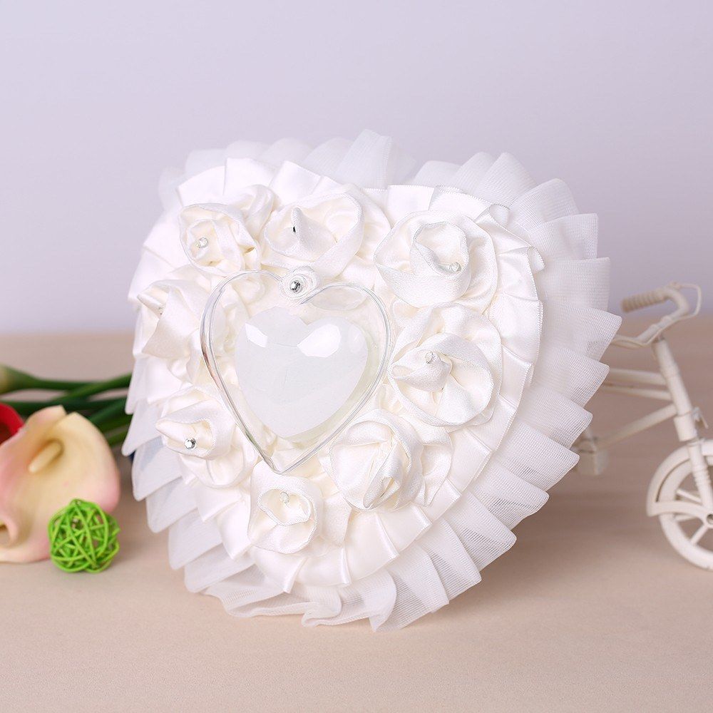 Heart shaped ring pillow, with a plastic box on it to hold your rings.