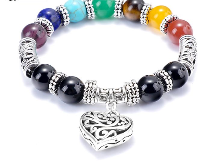 7 Chakra Reiki Healing Heart Bracelet is a conscious and thoughtful way to stay connected with your higher self. Feel the energy of your Chakras as this bracelet helps them to balance while wearing them.The bracelet is designed to balance all seven Chakas, infused with Reiki and blessed by monks...It brings harmony and balance the mind, body and spirit.All natural things in the universe aid in balance, health and cohesion. This stones are formed through thousands of years of evolution. This means that when you wear a crystal it will gradually balance your own energy.Crystal and stones are very powerful tools to help us find a state of harmony and health.This bracelet consist of 7 stones chosen for the ability to resonate with 7 main energy centers of the human body, 7 Chakras.When you wear this Bracelet, you will feel this powerful feeling of harmony and relaxation over you. It gets you back to your spiritually, emotionally, mentally and physically healthy self. It is a perfect gift for anyone!Get one for yourself, one for your friend, and one for your relatives.It is Unisex, great for friends and and loved ones.