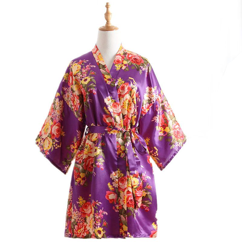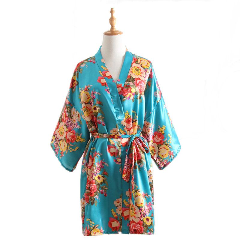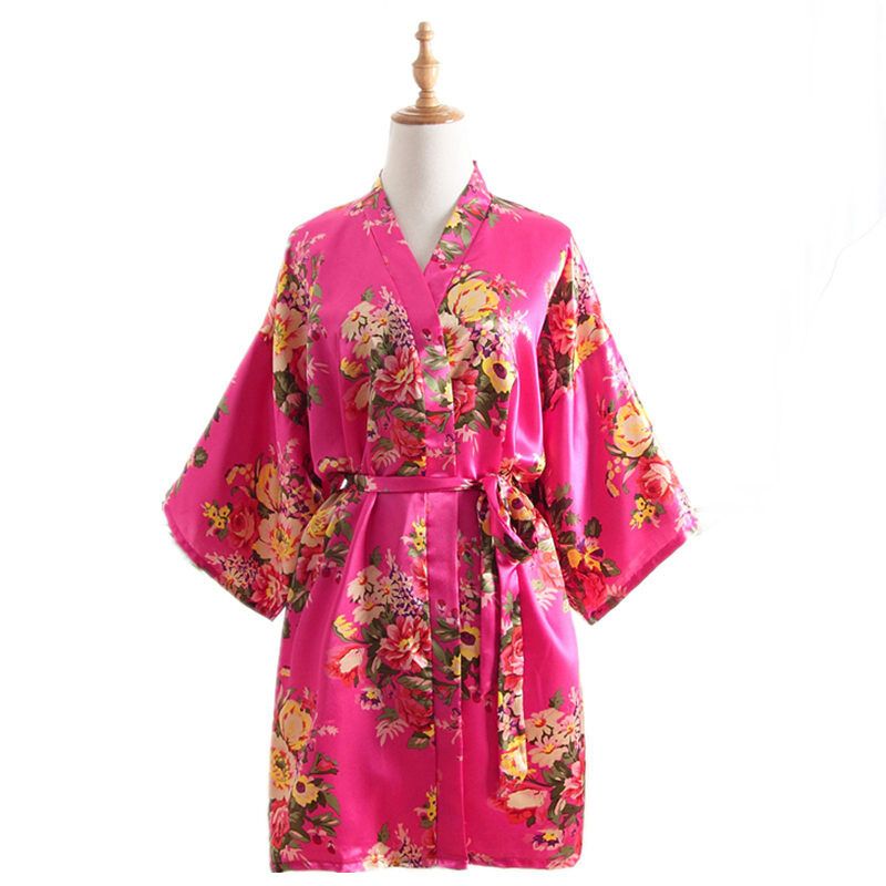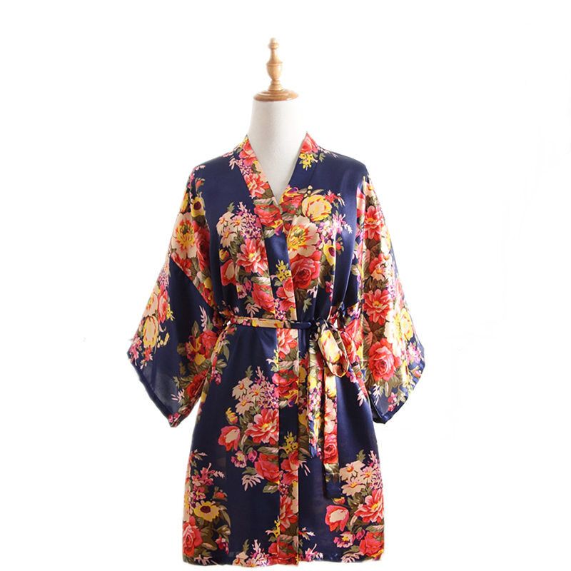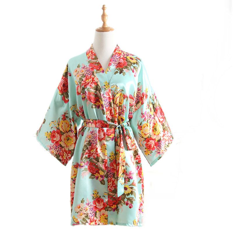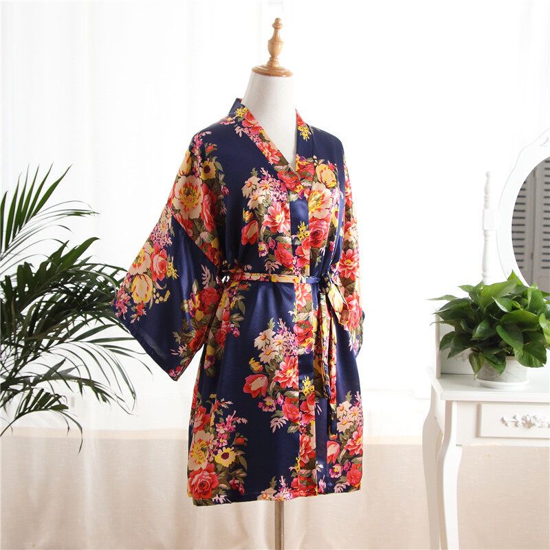 7 Colors Silk Cherry Blossom Pattern Short Kimono Gown Summer Nightgown Bathrobe