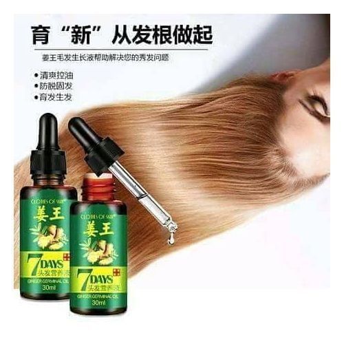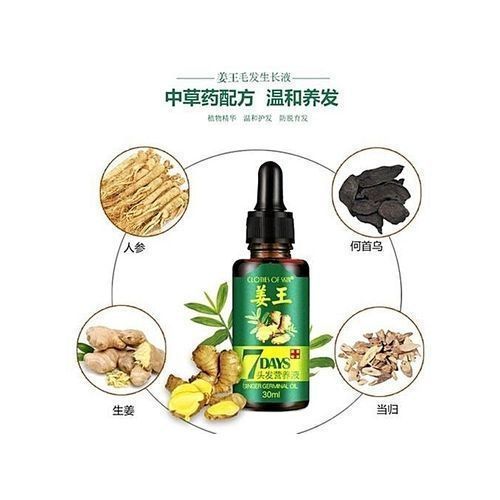 【Usage】: Wash hair before use, until the hair is half dry, the product will be dropped in the hair loss area or anywhere need to grow, drop some on the scalp, and then massage with a finger moderately 2-3 minutes to absorb ( No need to shampoo again after use), the effect is better 2-3 times a day! 7days Ginger Germinal Oil for fast hair growth. To be used from the roots of hair to the top.Works wonders within seven days. Made up of ginger and other wonderful herbs which aid hair growth. It can be used by both males and females.
