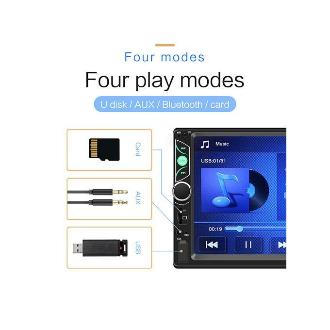 1. The car radio supports 7 colors of backlight adjustment;2. Car radio supports Bluetooth auxiliary, TF card, U disk flash drive, FM, RCA;3. CAR radio supports Apple X-R mirroring link;4. Car radio supports video output function; compatible with Apple CarPlay & Android Auto: Just connect your smartphone, you can access map navigation, phone contacts, emails, notifications with the help of Siri or Google voice assistant, allowing you to make calls and navigate ,play music. You don't have to look down at your phone while driving, so you are safer.