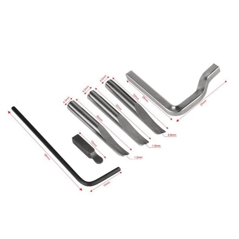 Leather edge cutter with 3 edge cutter tips for exchanging, tip width: 0.8 mm, 1 mm, 1.2 mm.