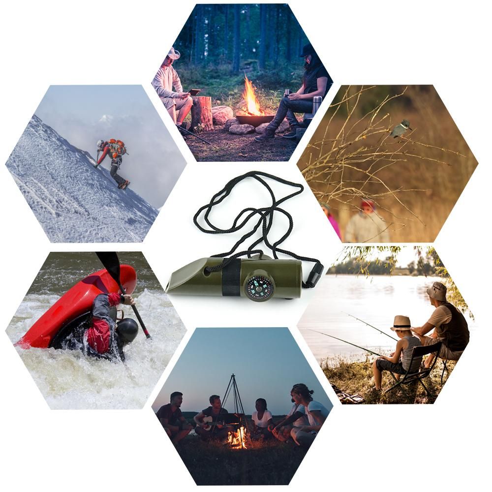 Buy 7-in-1 Emergency Whistle Multi-functional Outdoor Safety Whistle with Compass Signal Mirror LED Light for Camping Hiking Survival Boating Fishing in Nigeria