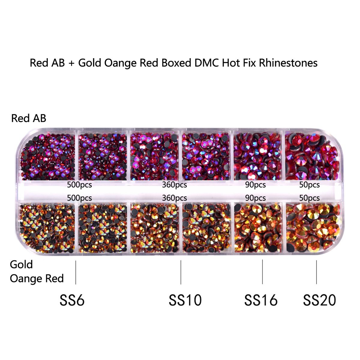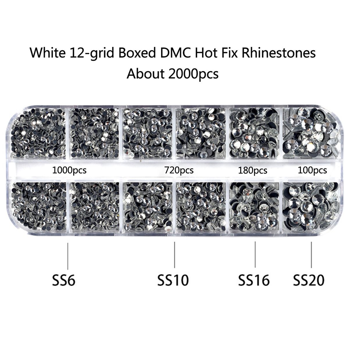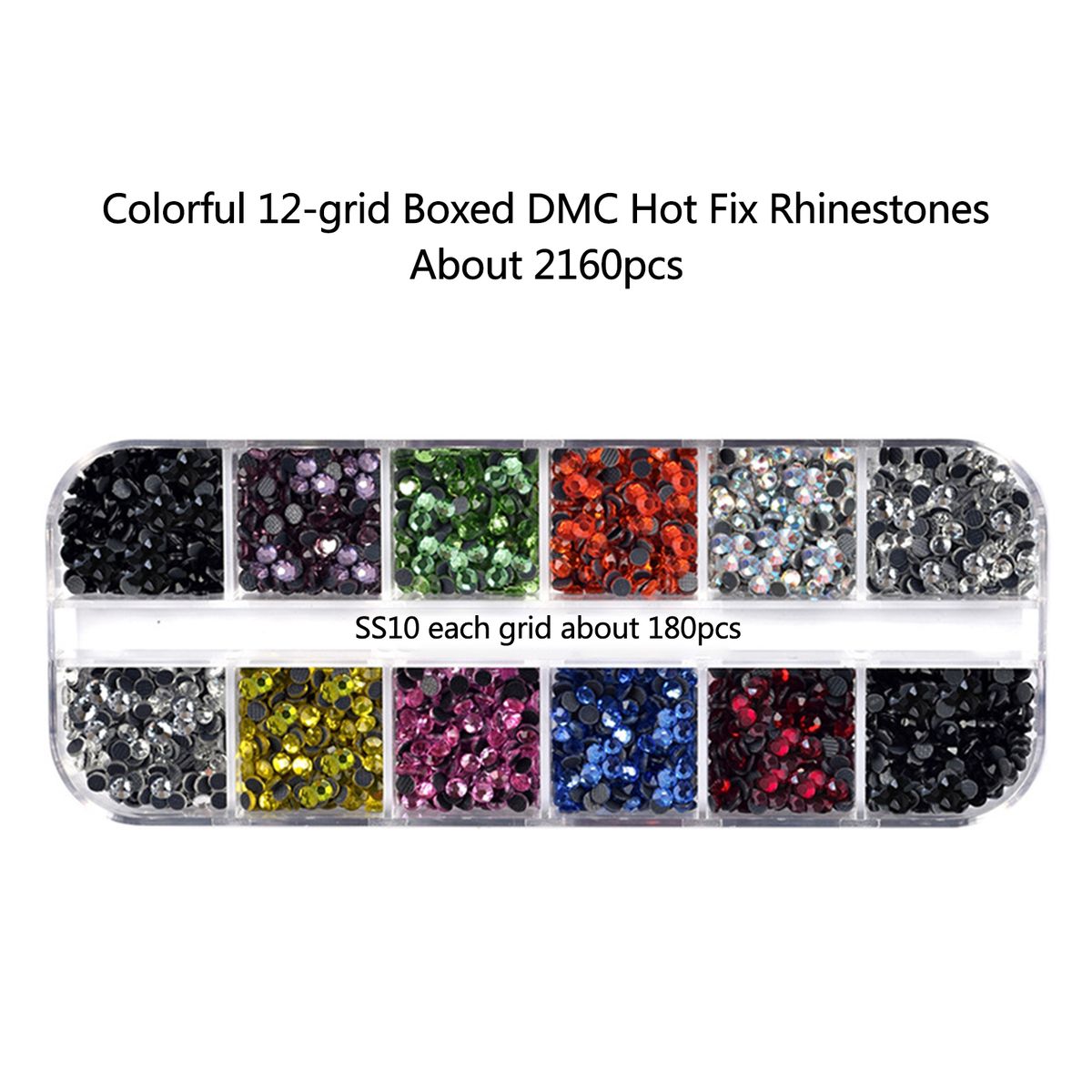 Total 3 boxes of diamonds, each box is 12 grids, DMC hot fix rhinestones, colorful and dazzling.
