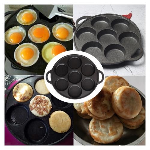 7 Holes Thickened Cast Iron Omelette Pan Hamburger Mold Uncoated Non-stick Cooking Pot Egg Dumplings Cake Pie Breakfast Maker