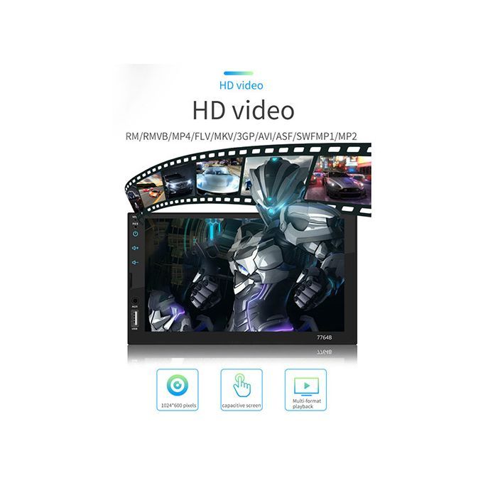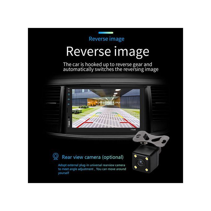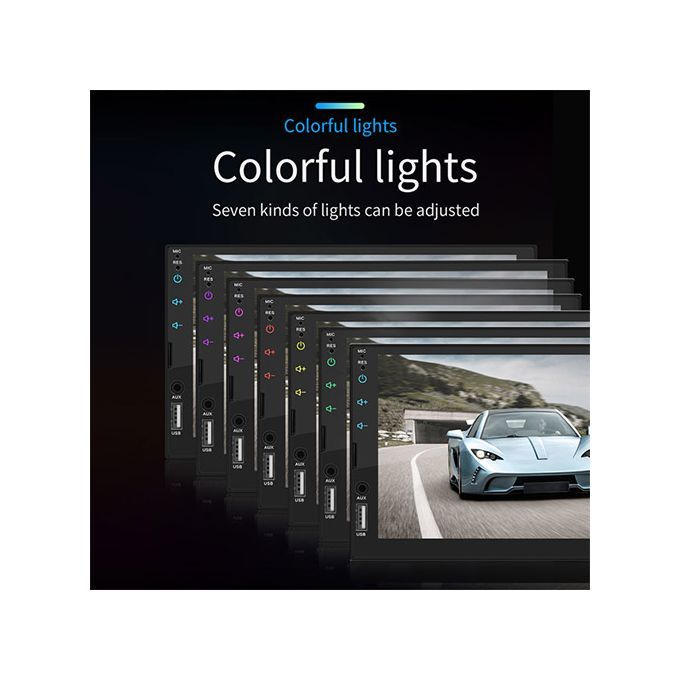 Fixed front panel, elegantly carry the cableBuilt-in D-play system: connect the mobile phone to access mobile phone contacts, emails, notifications, map navigation, music, video and other information, and realize voice control.Full-featured wireless remote controlBuilt-in Bluetooth function, can connect to the phone, hands-free incoming calls, safer when driving, Bluetooth music playback.Real-time clock functionAutomatic memory preset storage functionSupport Baidu car life function, mobile phone download Baidu CAILIFE, turn the machine back to Chinese for testingElectronic shock protectionFm broadcast: You can listen to real-time traffic, news broadcasts, weather forecasts, etc...programs. FM/MPX receiver 18 preset storage functionSupport steering wheel control function: use your car steering wheel to quickly switch the functions you want, which is more convenient.Support reverse rear view camera system: If connected to the car's backup camera, the car stereo monitor will rotate.Automatically view the reversing details and help the driver to stop safelyColorful lights: You can choose your favorite lights to adapt to different driving moods, and travel is no longer exhausting.The auxiliary audio input interface supports external MP3, mobile phone, music player, etc.