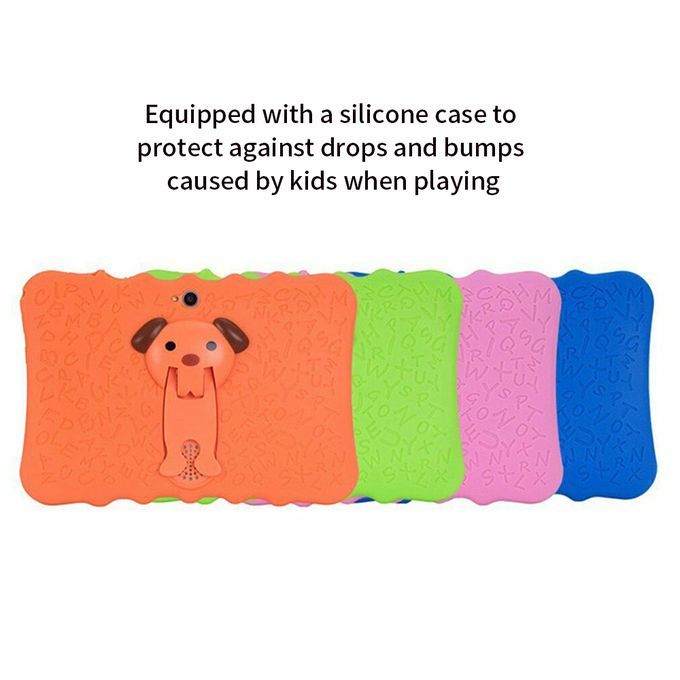 Equipped with silicone case and a support stand, to protect against drops and bumps caused by kids at play, and deliver stable support to the tablet.
