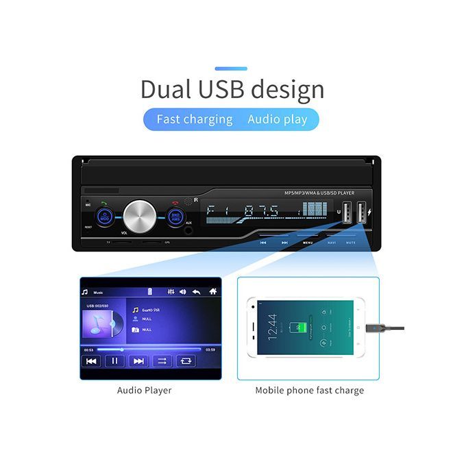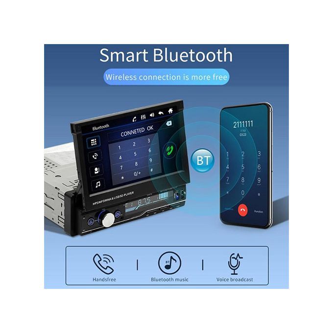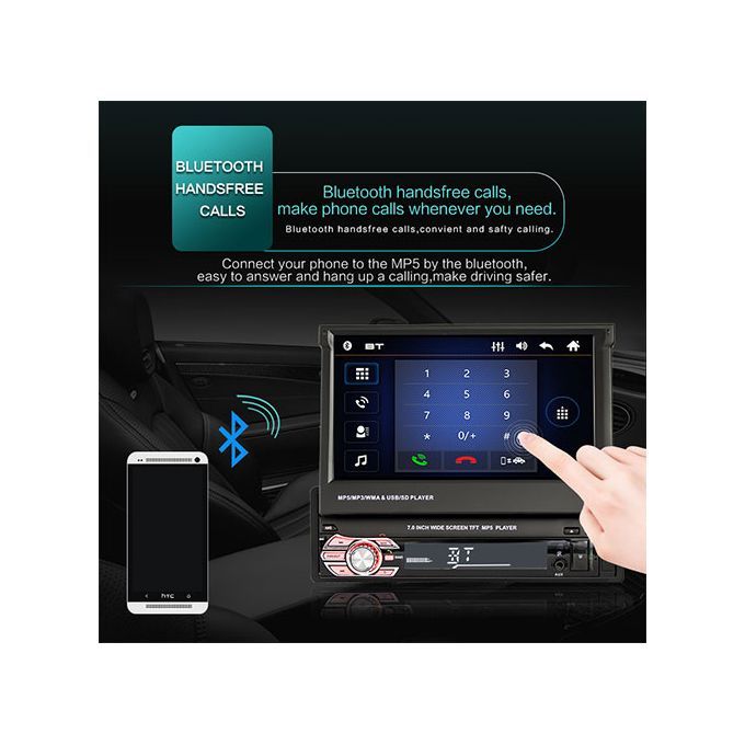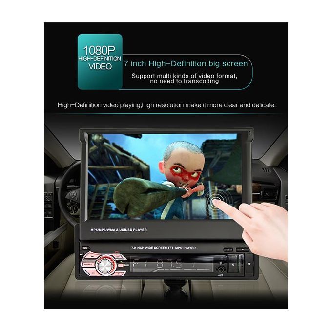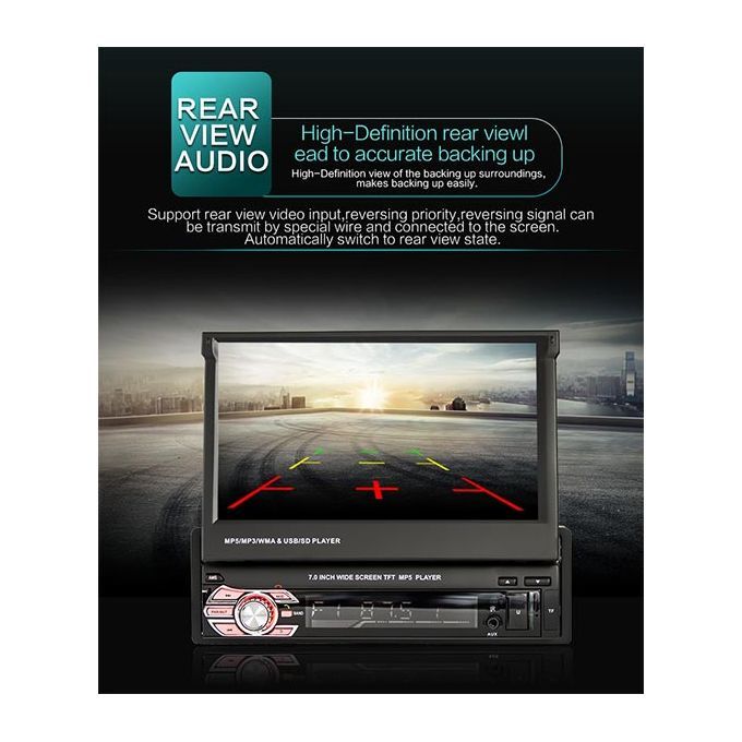 1. Operating system: WINDOWS CE; Decoding chip: C200S.2. Telescopic radio-the display is foldable and can be expanded or contracted according to different needs.3. Support lossless music sound. Support MP3/WMA/WAV/APE/FLAC and other music formats.4. High-definition upgrade version-supports Bluetooth free calling, Bluetooth music, multimedia video, lossless music formats.5. High-sensitivity touch screen, intelligent high-power, 7388 IC output, LCD display, remote control.6. TDA has low noise, high sensitivity, clear sound and rich bass, high power output of 7388 integrated circuit, and high fidelity.7. LCD display to enjoy the video.8. LCD low radiation, low power consumption, true image restoration, high brightness, display beautiful images.9. Reversal function-support rearview instrument.10. High-definition video, 1080 p pixel high-definition TFT screen, smooth movie watching, support RMVB/RM/MP4 video format.11.7-inch high-definition digital TFT sliding touch screen, sensitive to touch, smooth writing, and fast recognition speed.12. Support large-capacity memory, SD card reader, USB charging.13. Built-in FM stereo radio, imported radio IC, strong receiver, saving radio stations.14. Support languages: Chinese/English/Spanish/Portuguese/Russian/Italian/German/French/Polish/Turkish/Czech/Hebrew.15. Support mirror link function. (Only support Android, USB cable connection)