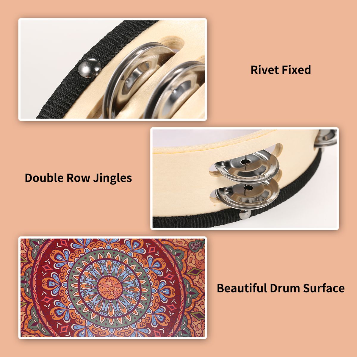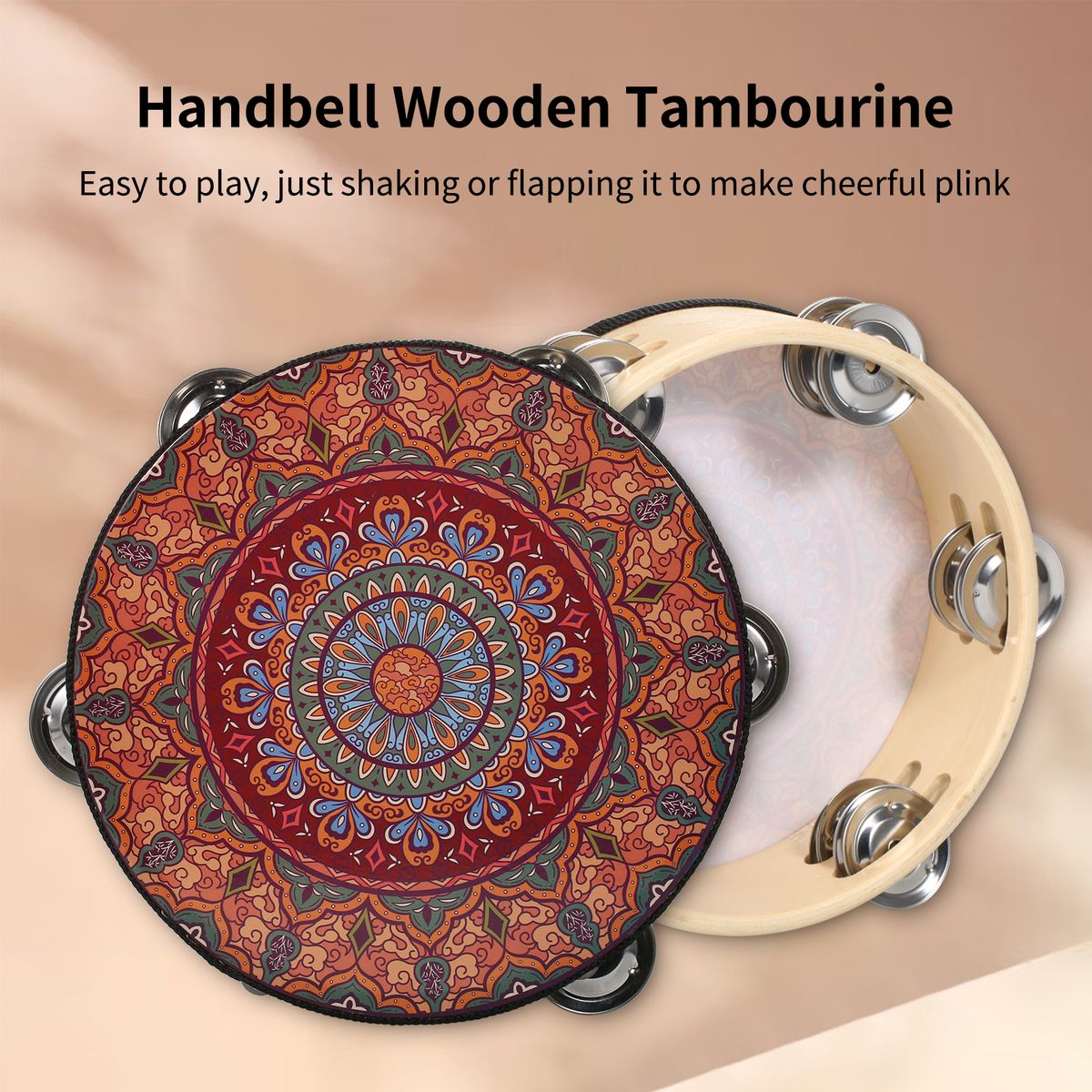 Buy 7 Inch Wooden Tambourine Handbell Hand Drum With Double Row in Nigeria