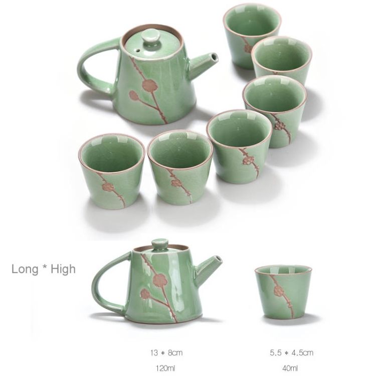 1. Products include: 1 teapot, 6 cups2. Teapot size: about 13x8cm, capacity: 120ml3. Teacup size: about 5.5x4.5cm, capacity: 40ml4. Ge kiln is elegant and simple in shape, and its glaze color is precious to the descendants.5. Packaging: gift box packaging