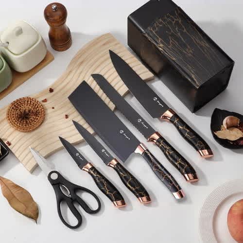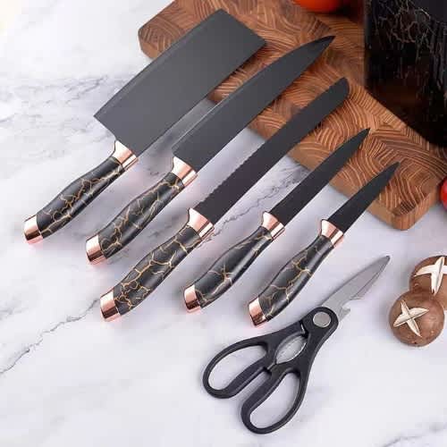 Buy 7 Pcs Non-stick Kitchen Knife Set & Scissors + Knives Sharpener With Holder in Nigeria