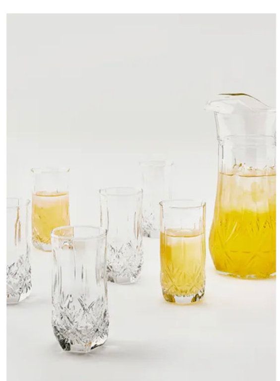 1 X 7-Piece Drink Set (Jug 1.8 L + 6 Tumblers 31 cl), Crystal