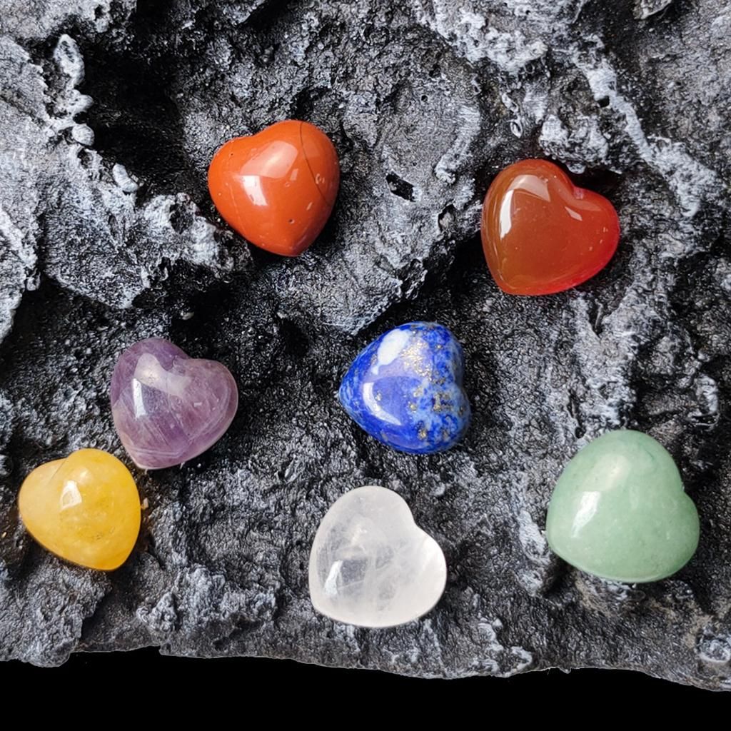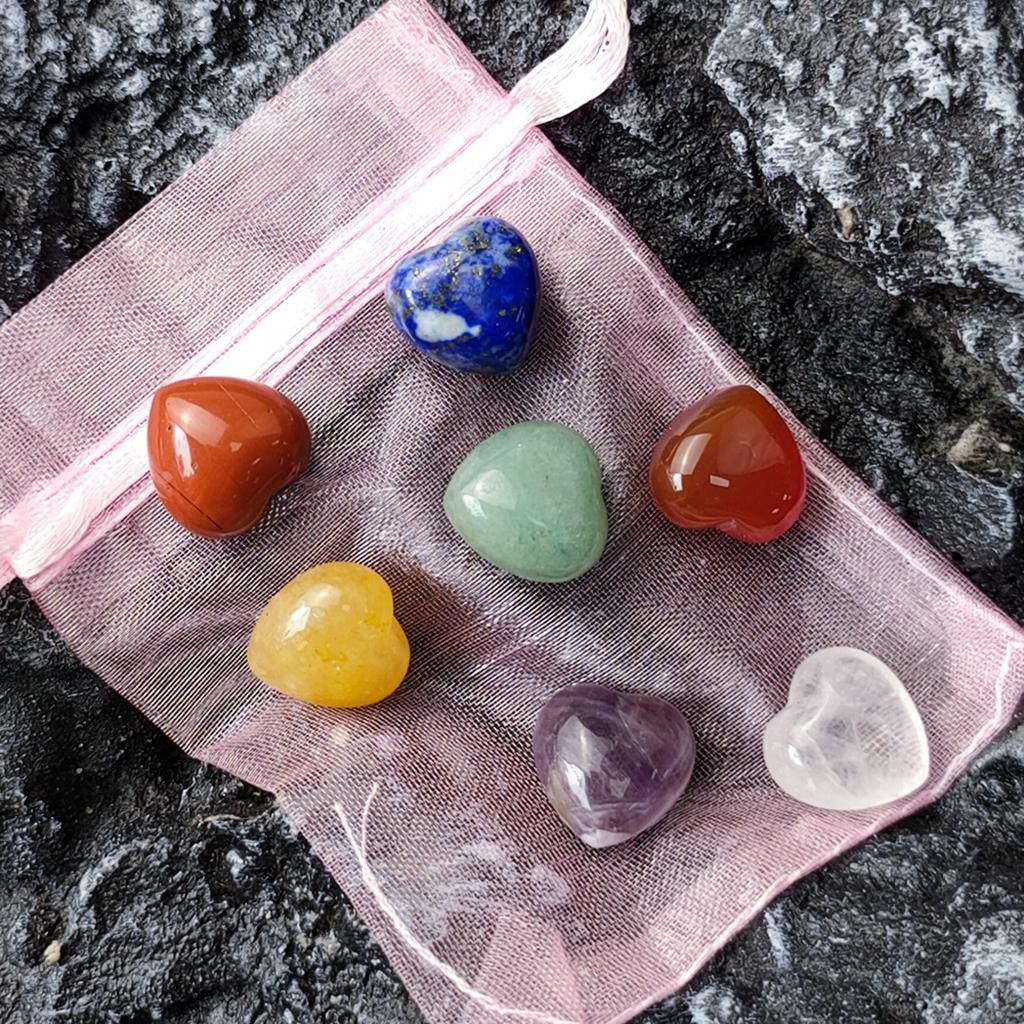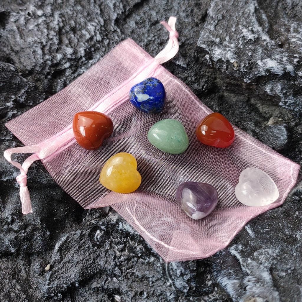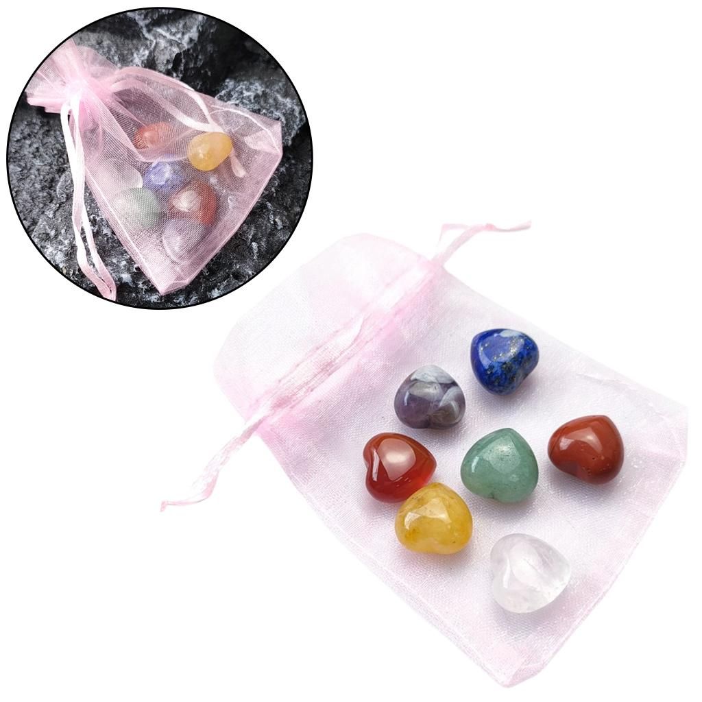 7 Pieces Natural Heart Shaped Crystals Stone & Storage Bag