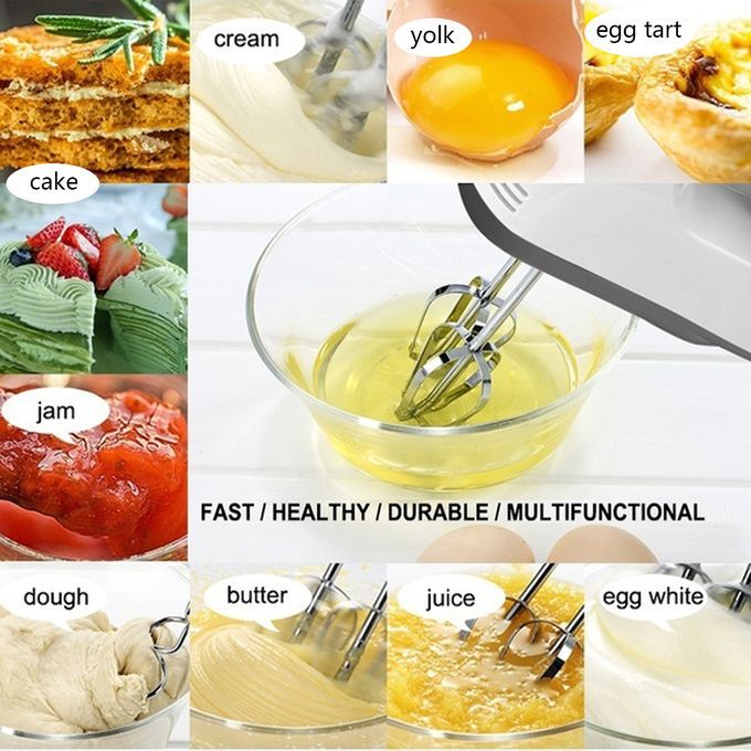 7 Speeds: 7 gears speed control allows you to mix a variety of ingredients to make delicious desserts. At speed 1-2 to stir batter, speed 3 to whip , speed 4 to make watermelon juice, speed 5 to mix milkshakes, and speeds 6-7 to whisk eggs.