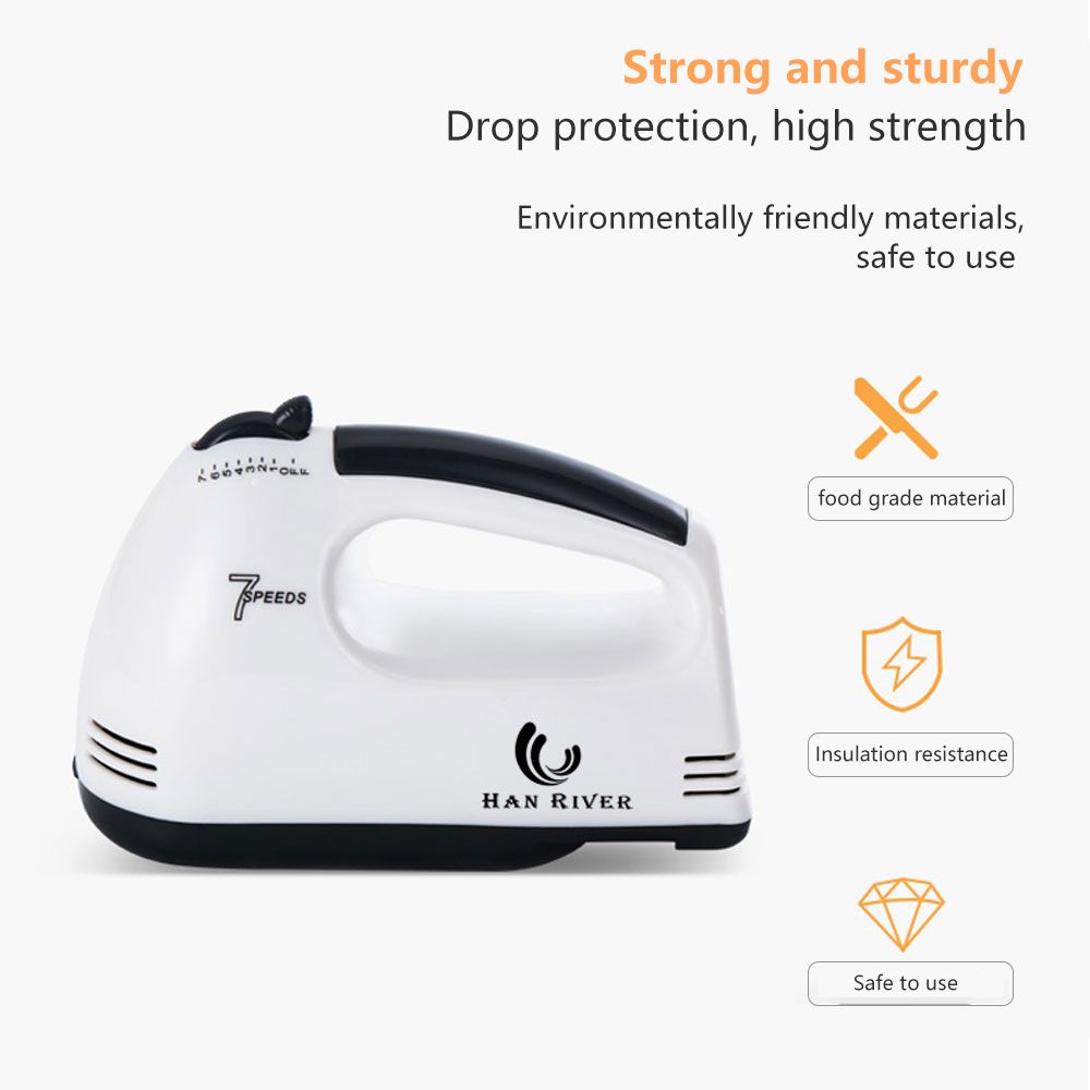 Specifications:Name: Handheld Electric Egg BeaterFunction: beat eggs, flour, butterPower: 180WVoltage: 220-240VFrequency: 50/60HzPlug: EU plugWork stalls: 1-7 speed gearEgg beater placed: handheldMaterial:ABS Plastic+Stainless steelPackage size:19x8x15.5cm