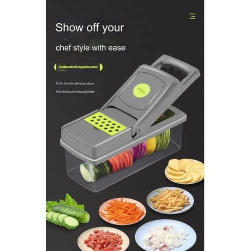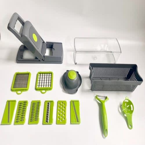 Buy 7 Stainless Steel Blades Multipurpose Vegetable Cutter/Kitchen Chopper With Storage Container - Green in Nigeria