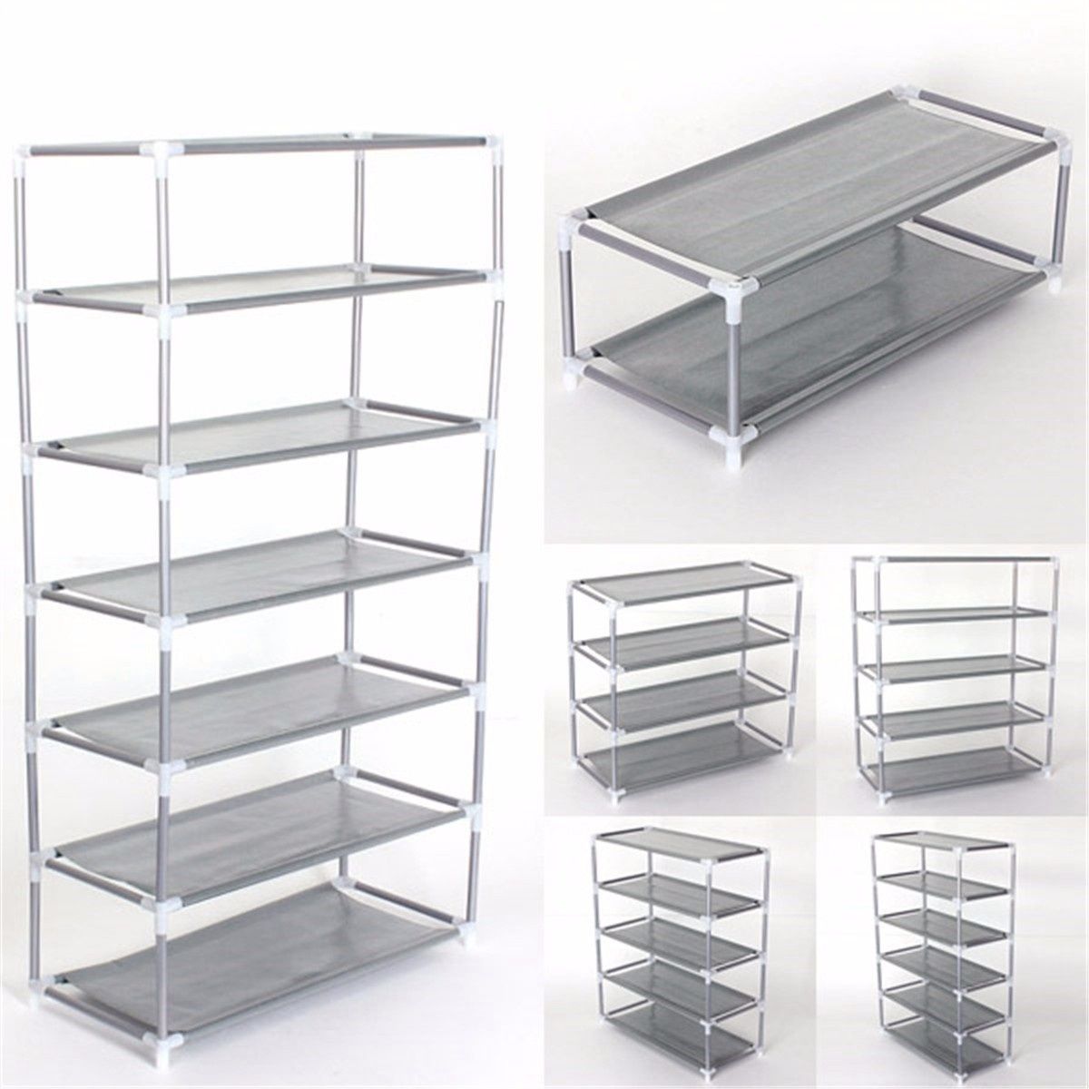 - 4~7 Tiers Metal Silver Adjustable Shoes Shelf Rack Stand Organizer Storage Boot Holder