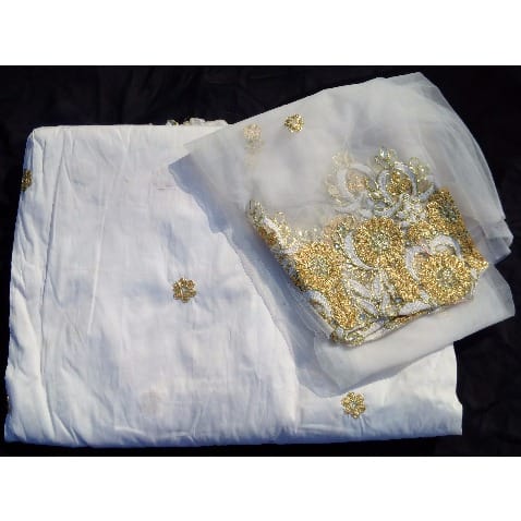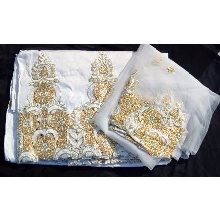 Buy 7 Yards Embroidered & Beaded Indian Lace George with Blouse - White in Nigeria