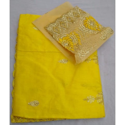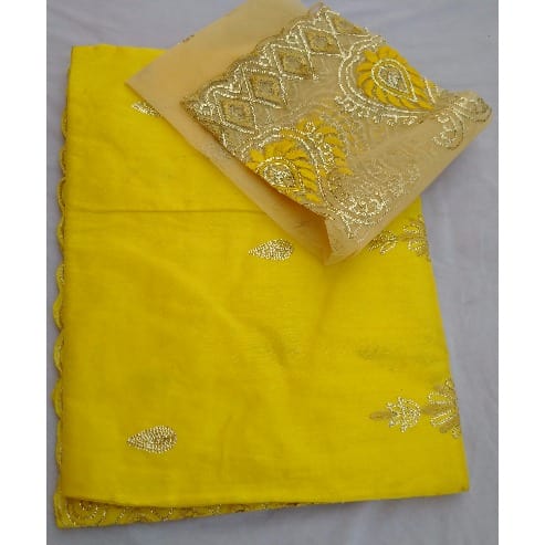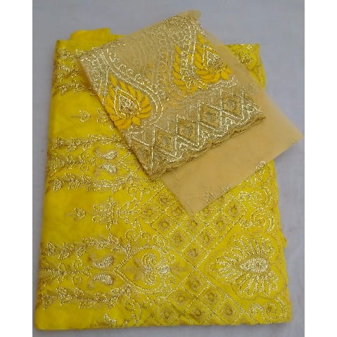 Buy 7 Yards Embroidered & Bedazzled Indian Lace George with Blouse - Yellow in Nigeria