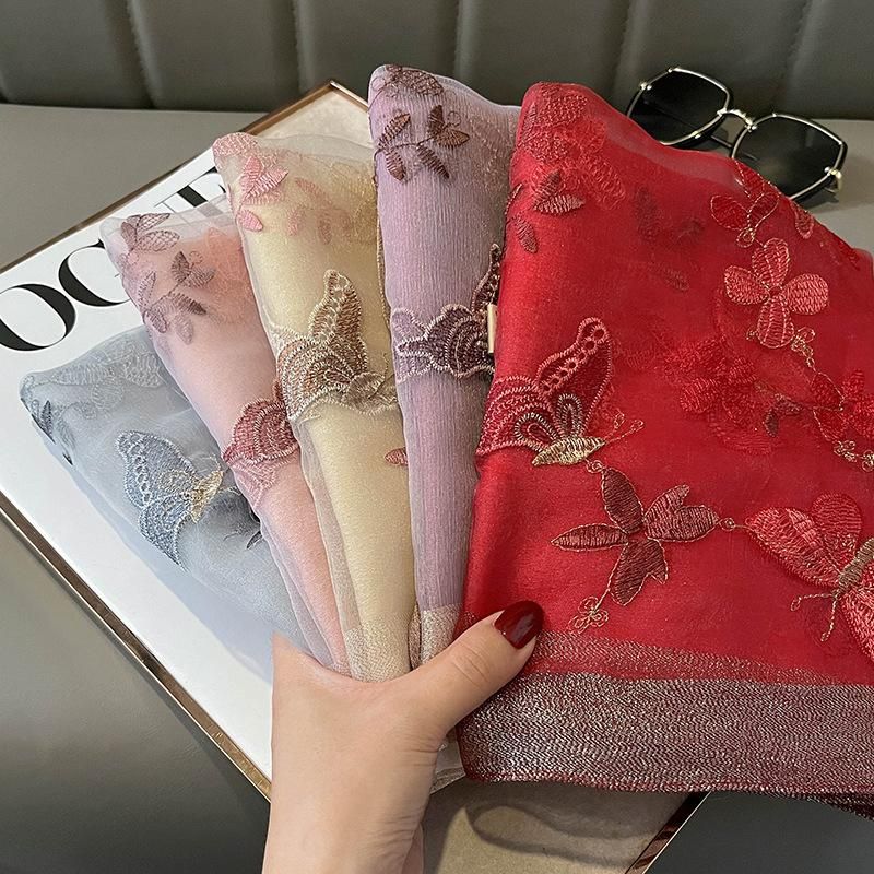 70*180CM Luxury Pure Silk Scarf Shawl Women Spring Autumn Long Scarves Ladies Fashion Embroidered Silk Neckerchief Hijab NewWeight:100g