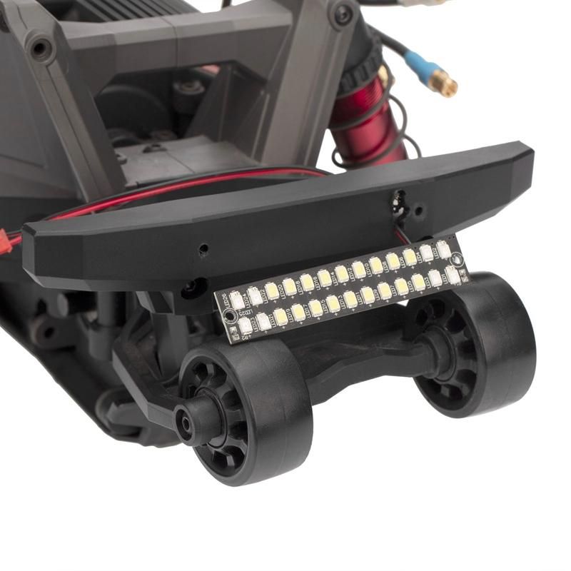 The rear bumper light is composed of 18 white and 8 red LED lights in double rows.